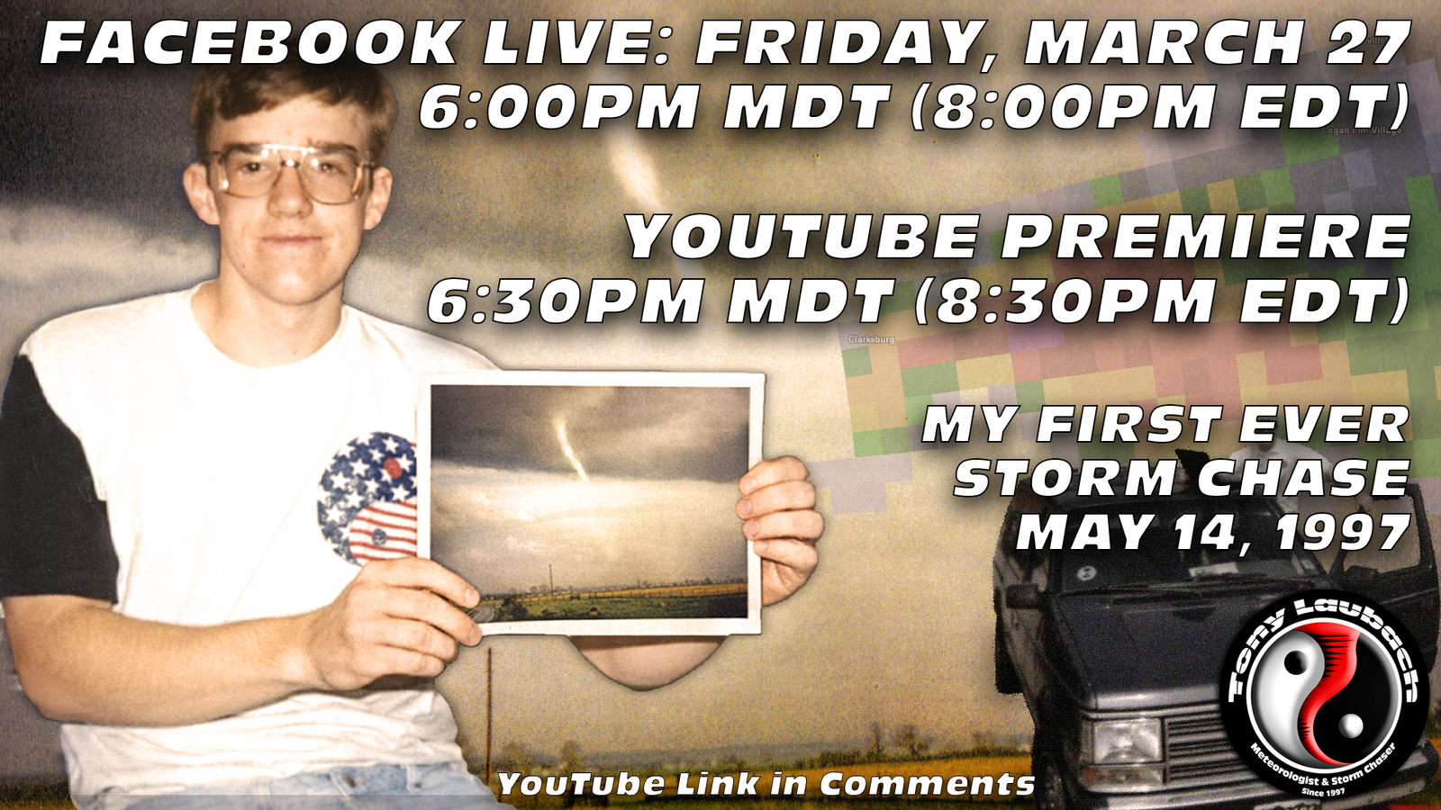 Welp, the YouTube launch happens on Friday! At 6:30pm, the first NEW video of the NEW rebrand premieres! It’ll be the first time ever online I have detailed out my first chase and first tornado all the way back in 1997. It was the chase/tornado that started this whole thing I’ve been doing for the last 30 seasons. I poured a lot of time and ‘research’ into this; and by research, I mean digging through old tubs and boxes to find everything I still had in existence from that era. That includes an old high school “time capsule” video I took, literally ONE WEEK before the tornado chase. That’s so cool to me that video was shot when it was cause it just gives the video such an era. The photos, including some from waaay back, plus some cover video I had to do, including radar and a very nifty TWC call-back to the late 90s. I’m very proud of it, and it’s a perfect way to launch to the channel. Meanwhile, I am going to go live on Facebook about 30 minutes prior to the launch to chat and generate a little buzz. I am not expecting a big turn out, probably my mom and my aunt honestly haha I don’t have a huge captive audience, but you never know. I don’t really care, I am just excited to have this going. Even have a couple other VLOGs and chase stories in the can, ready for the every-other-Friday upload schedule. The Fridays between are reserved for low-lift, more short-form type stuff; one of those things being called Storm Chase minis where I talk about an event that doesn’t deserve or need a full chase log, but may have happened on a chase that’s pretty cool. Other ideas are behind-the-scenes type stuff, coverage of a certain event, maybe talking about non-storm-chase stuff like blizzards or hurricanes, etc. Easy lifts, basically, that don’t require hours of investment to create. I mean, hell, I got 30 seasons worth of stuff, plenty to keep the channel on at least a once a week schedule.