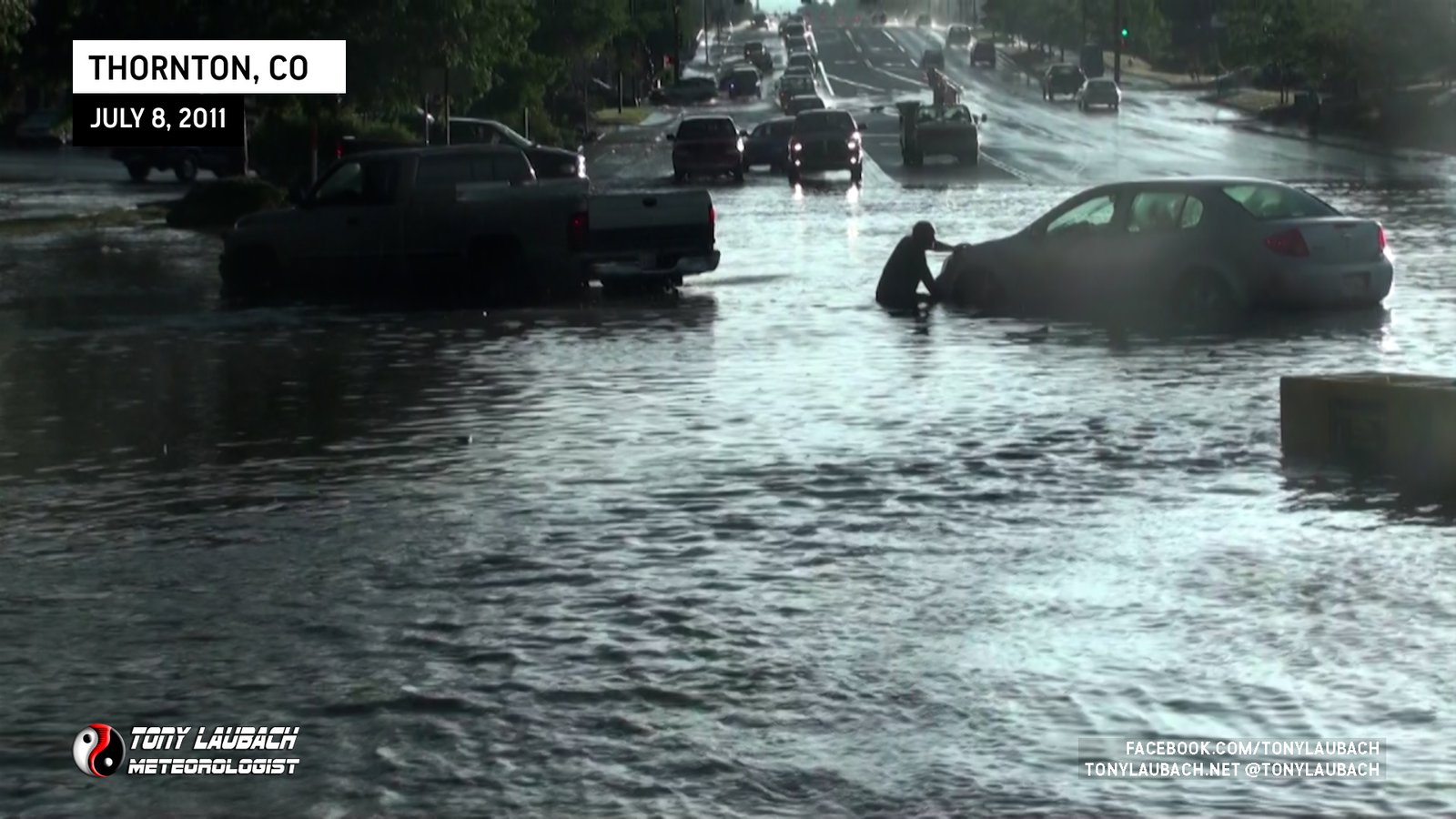 Another in a series of flash flood events across the Denver area as flash flooding from a severe storm over Thornton stalled out multiple cars and closed several local streets.