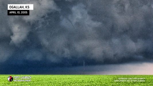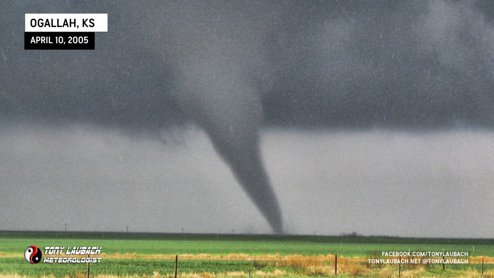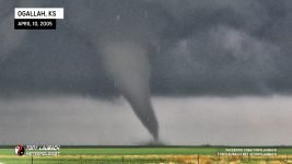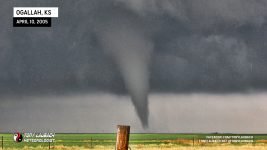 We stuck with the storm, pursuing it north toward I-70. Enroute, we picked up a third, rope tornado a few miles up the Highway as we approached Ogallah. That tornado was on the ground for less than a minute.