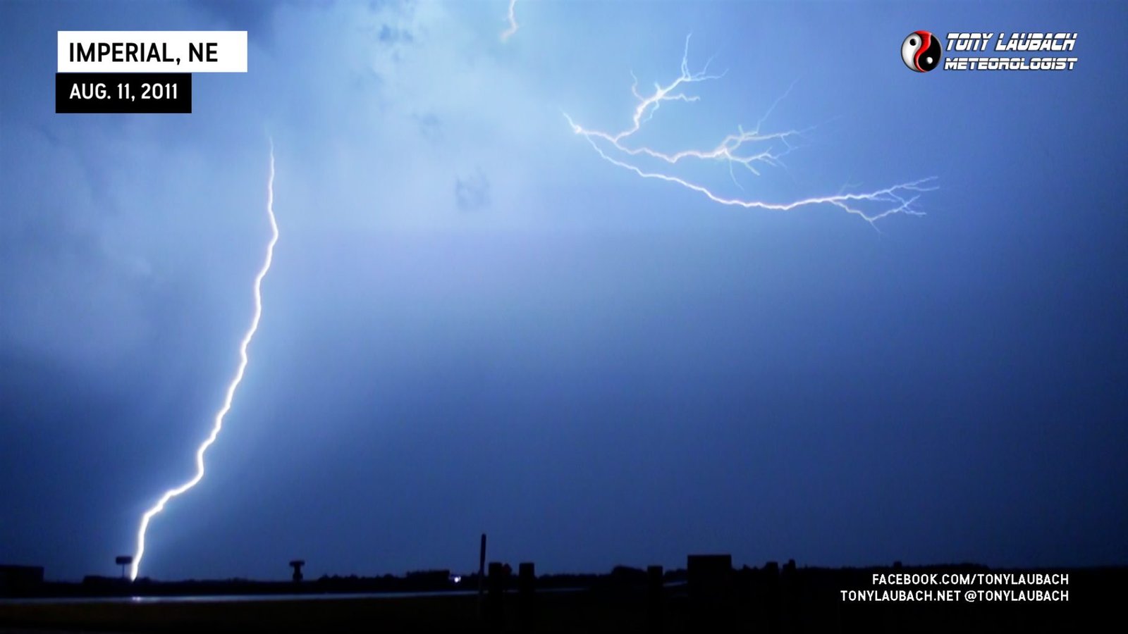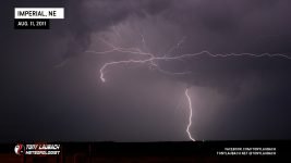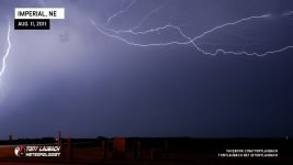With the tornado threat pretty nill, I refocused my attention how to get into the 2.50″ marked hail core. I attempted a variety of roads northwest of Imperial, but all were too treacherous to get on. Meanwhile, the lightning from this storm was really getting intense with vivid CG strikes all around me. Once I safely returned to US-6, I set up shop to capture some of these strikes.