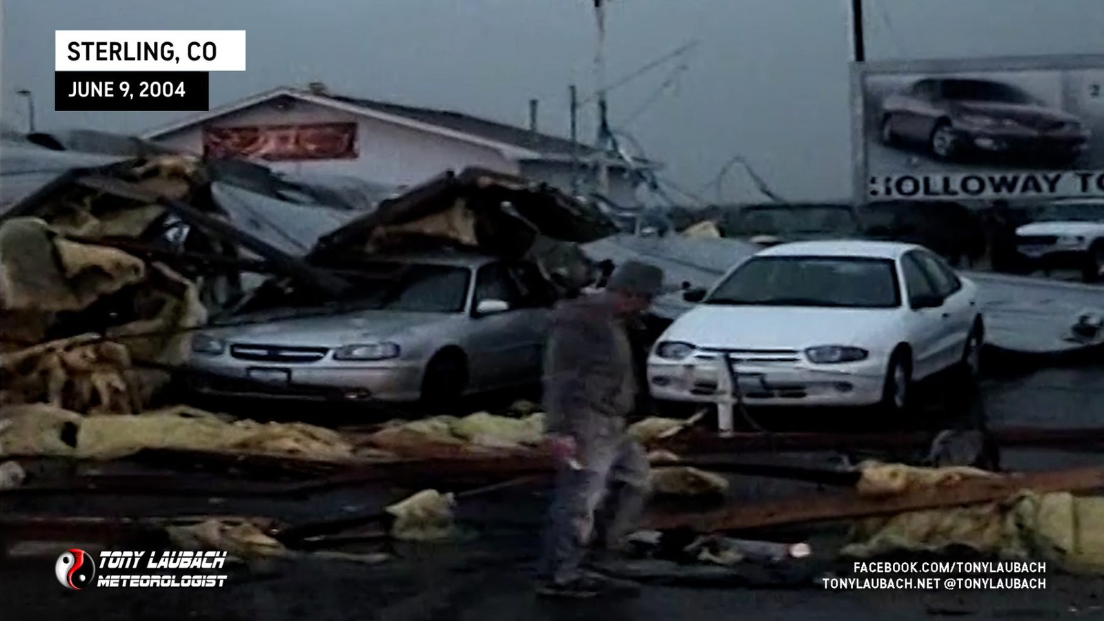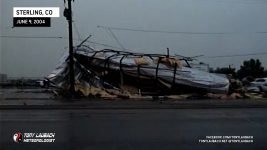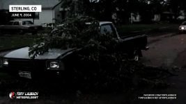 As I neared the Sterling exit, the storm produced a brief, but damaging tornado on the south side of Sterling.  I was blocked from view by the precip core and did not see the tornado, but hearing reports, I ventured into town where I documented damage to a car dealership as well as tree damage through town.