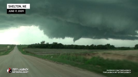 This tornado would lift fairly quickly as we made our approach, but still on a line to get ahead of this storm, there was plenty more action to come. We backtracked on US-30 toward Shelton, and took Shelton Road north out of town to get ourselves in line with the business end of the storm.