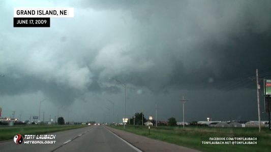 At this point, there was growing concern of this storm as it approached the heavily populated city of Grand Island. We eventually got to US-281 on the south side of the city and turned north to multiple areas of circulation, including funnels, descending on Grand Island.