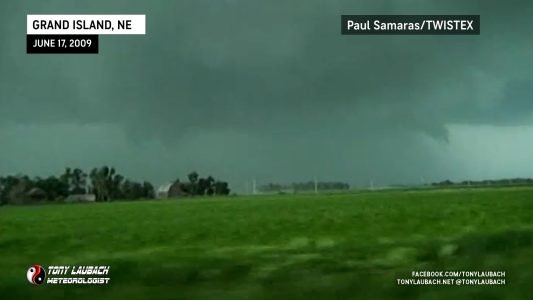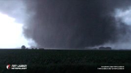 “Final tornado of the evening was fairly violent producing damage about 5 miles west of Aurora, Nebraska. Mesonet teams had the tornado surrounded from the west, south, east, and north (probe vehicle) as the tornado moved to the east at a rather slow 10 knot pace. Preliminary group discussions suggest that this strong tornado was likely the best sampled tornado so far for TWISTEX.