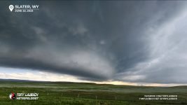 Hints of cells started popping early afternoon over the higher terrain off to the west, and one tower started to initiate. When it did, I opted to make a play a little further north near Slater to see if I could steal an early hail core intercept. We watched this storm approach, struggling at first as typical with storms coming off the higher terrain, but it looked good and definitely had some hail. Several of us more impatient chasers who left Chugwater to sneak a peek at this core were sitting up here at the Slater exit, waiting to see what kind of hail this would bring.
