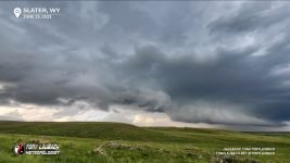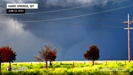 I raced south just after this feature crossed the road, but shortly after heading south, I ended up what I thought was RFD, but was likely the initial tornadic circulation of the storm’s initial tornado as I drove through and had the roof “pop” on my vehicle with a bout of pretty hardy winds. Shortly after, I observed the tornado itself, but got no imagery as I was making the turn onto WY-313 and had various stuff (terrain, grain elevators) in my way (reminds me of the Robin Williams “Inventing Golf” sketch) “*BLEEP* NO, I PUT $H!T IN THE WAY”
