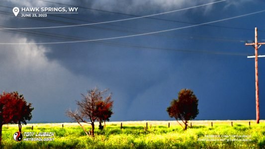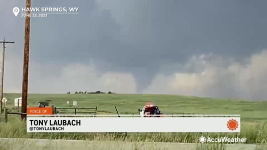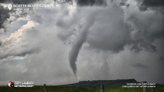 The third tornado, I had banked east all the way to US-85 south of Hawk Springs as the traffic was getting a little much (behaved, but a little much). Fortunately I still had a view west and was able to put that tornado live on the AccuWeather network, my second tornado in three days to go live.