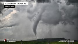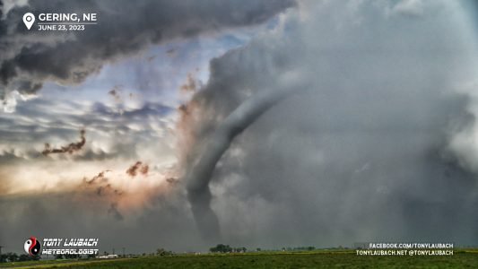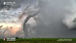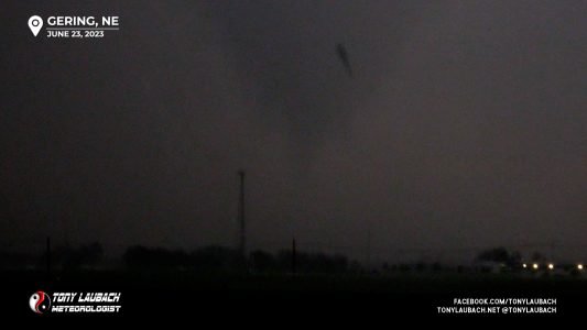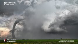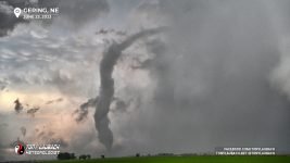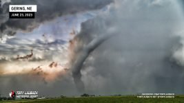 Further down the line, this time in Nebraska (after the Hawk Springs tornado), I observed a rather large looking tornado around 6:45PM. I attempted some video, but contrast was horrible given how far east I was of it, so I had the wherewithal to grab my Nikon and know I could post-process later to bring out the definition. The location watermark is where I was as this tornado was still in Wyoming. This was tornado five.