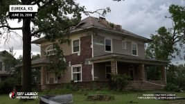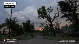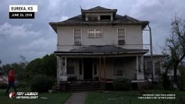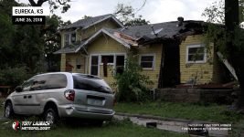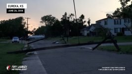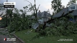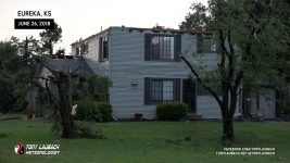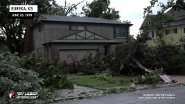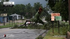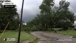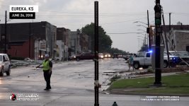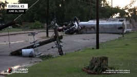 Meanwhile, about 30 miles east, another storm had quickly developed, and before a warning was put out, had dropped a tornado in the heart of Eureka. My chief Met got in my ear and informed me of the unfolding situation, so in the middle of the falling hail, abandoned my spot, racing out of town through the bigger, 2″ hail (which did crack my windshield), and raced the 30-miles east on US-54 to get to town. In the back of my mind, I hoped, given the slow storm speeds, that I may have a hailstone’s chance in hell to see something on that storm, but I did not take into account how bad the damage would be in town.