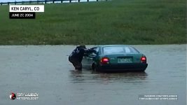 Vehicle Submerged In Flood Waters Under C-470 Overpass