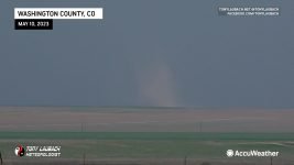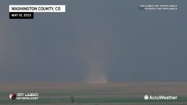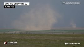These storms were producing a variety of ground-based dust.  Some clearly gustnadoes, well out ahead of anything tornadic.  However, there were a few that appeared to have some attachment to the clouds.  I witnessed a pair of these swirls to my north somewhere south of Akron.  Unfortunately I do not have an archived GPS map to show EXACTLY where I was, but this was the view of the two swirlies.