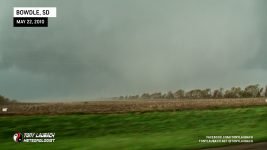 We didn’t have to wait long for the next tornado.  As we were discussing whether the Bowdle tornado was still going or not, a new meso to the northeast became apparent, and about 3 miles down the road, we observed our fourth tornado touch down to our northeast.  We watched this tornado for several minutes as we approached Gretna from the west on US-12.