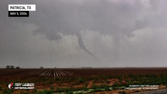 We left my car at the police station and I jumped in with Scott for the remainder of the chase. We eventually intercepted the tornado southeast of Patricia, but were looking in toward the meso from the north and had poor contrast. None-the-less, it was the first tornado of the season for me.