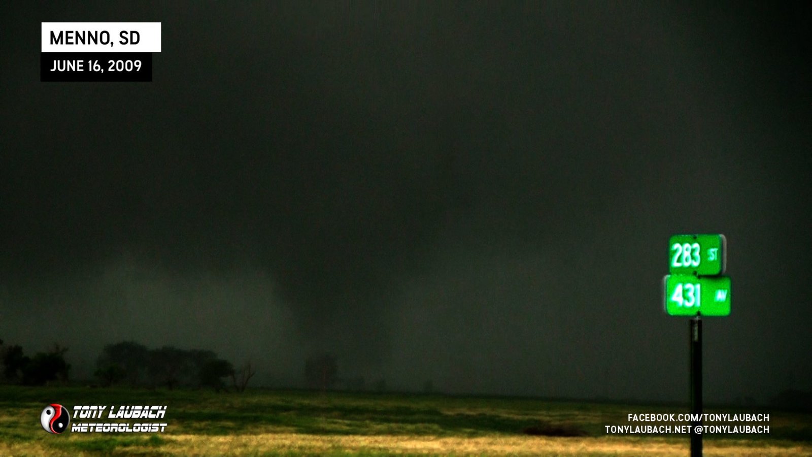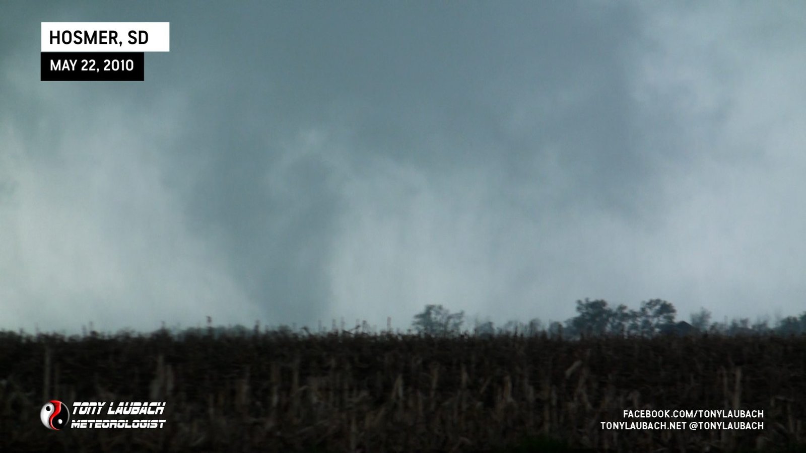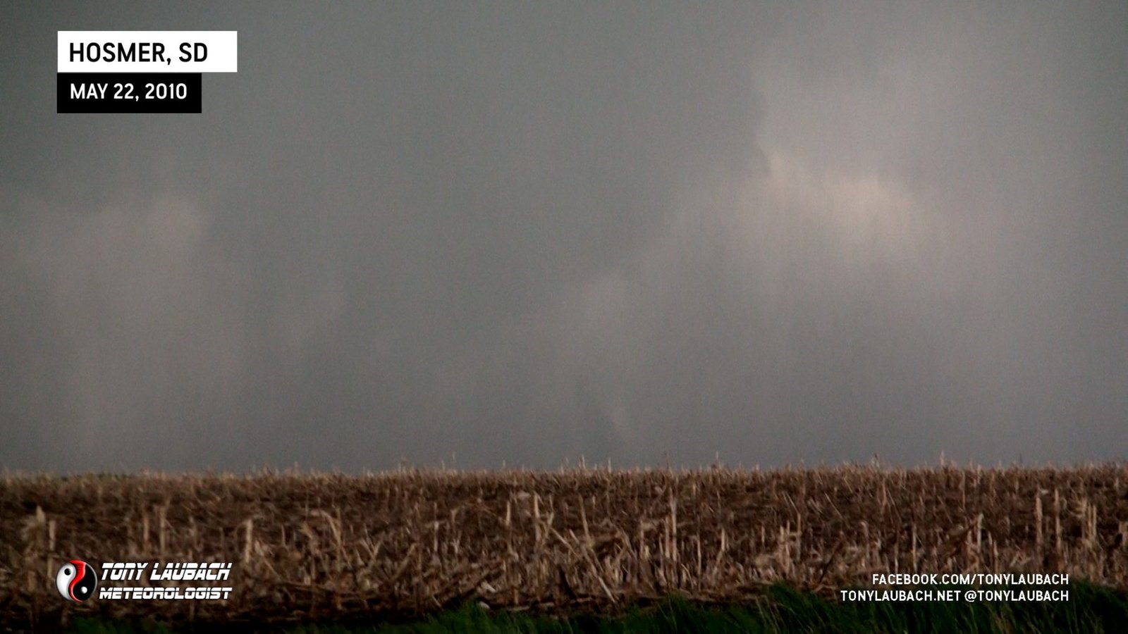 Remnant ground circulation from last tornado of the event east of Huntimer, viewed from distant south along I-29 north of Sioux Falls.