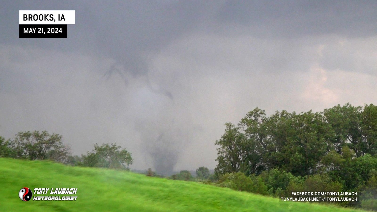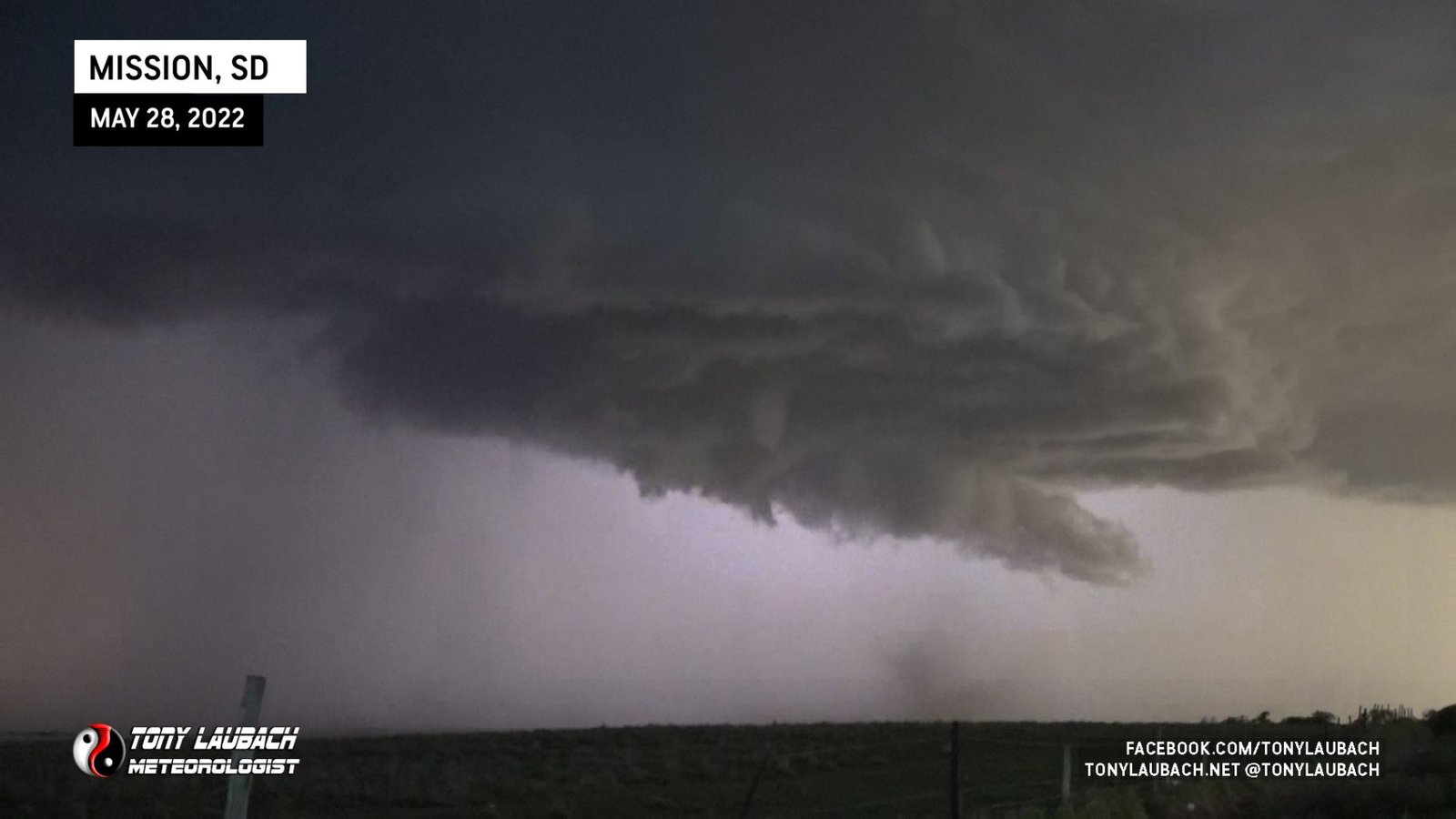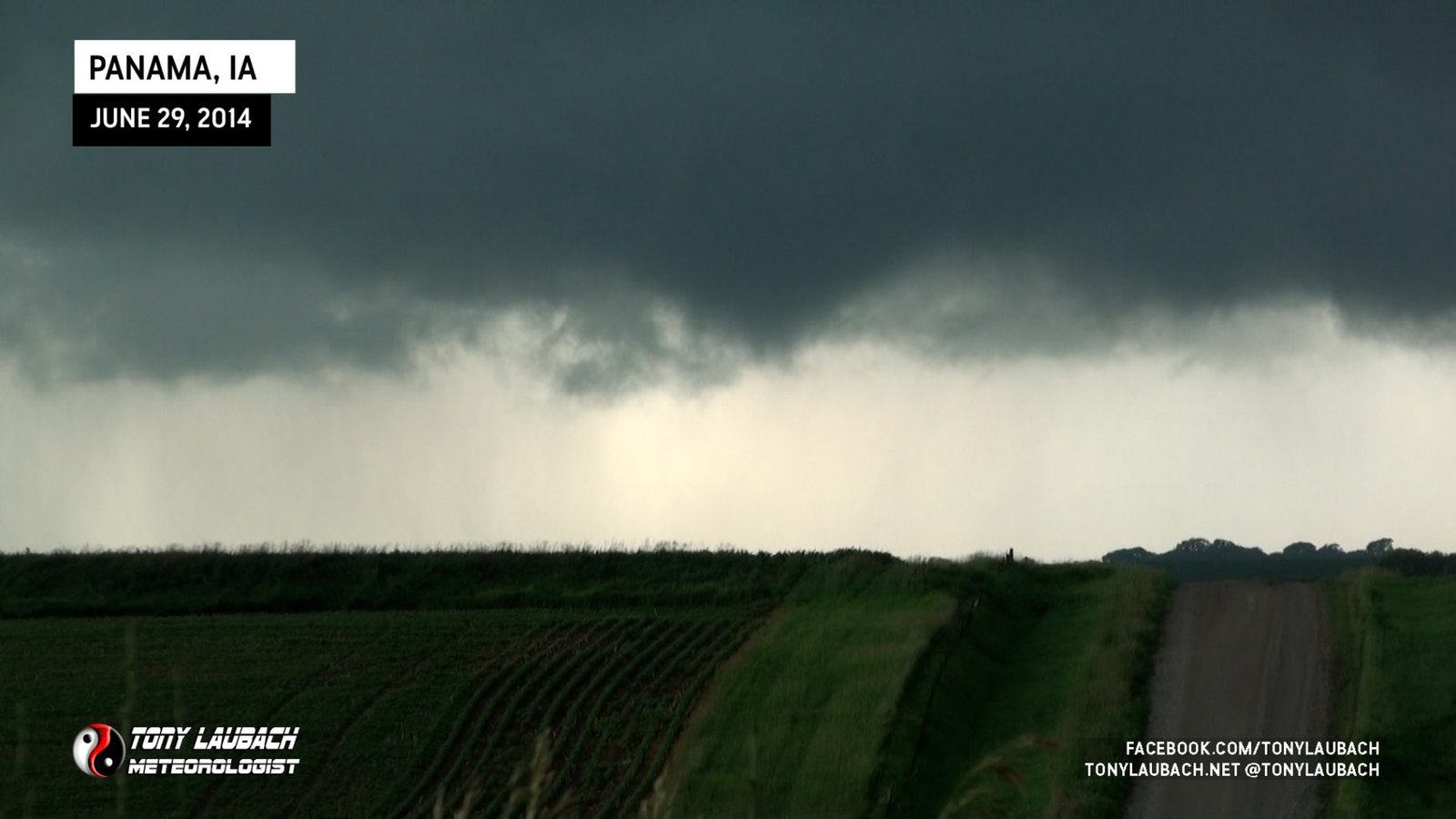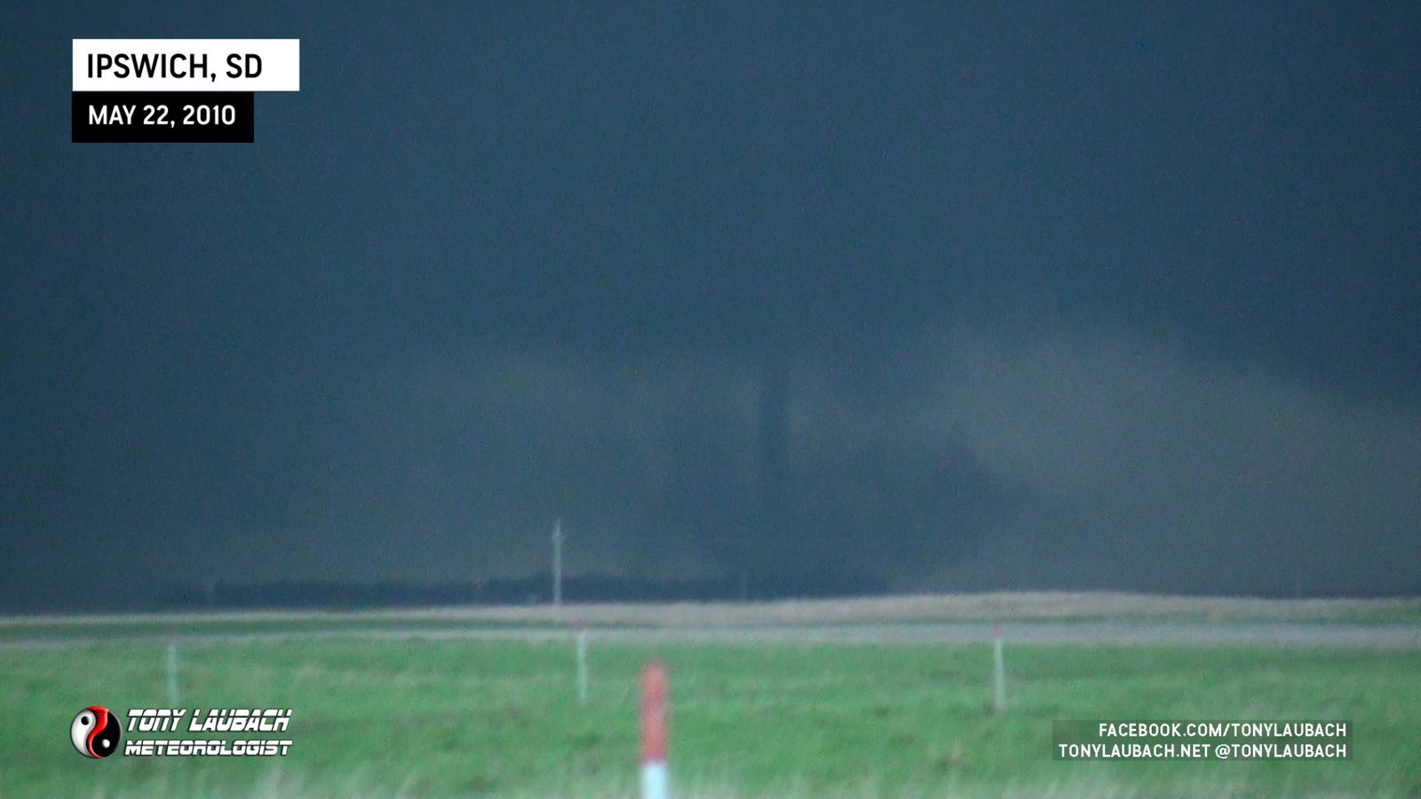 Remnant ground circulation from last tornado of the event east of Huntimer, viewed from distant south along I-29 north of Sioux Falls.