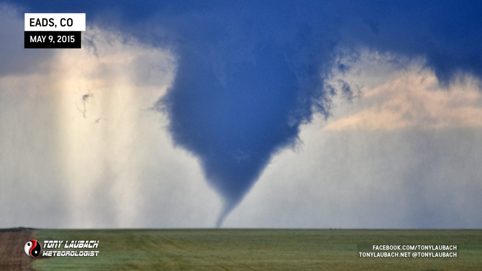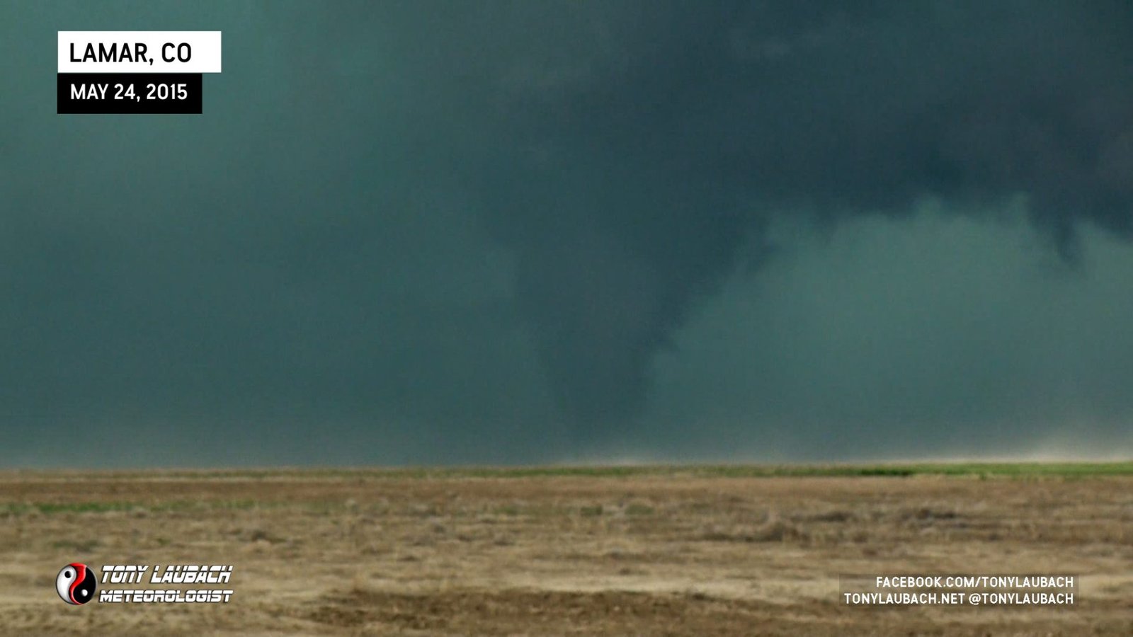 Large tornado documented from birth to death as it slowly crossed US-160 and destroyed a home on the north side of the road.