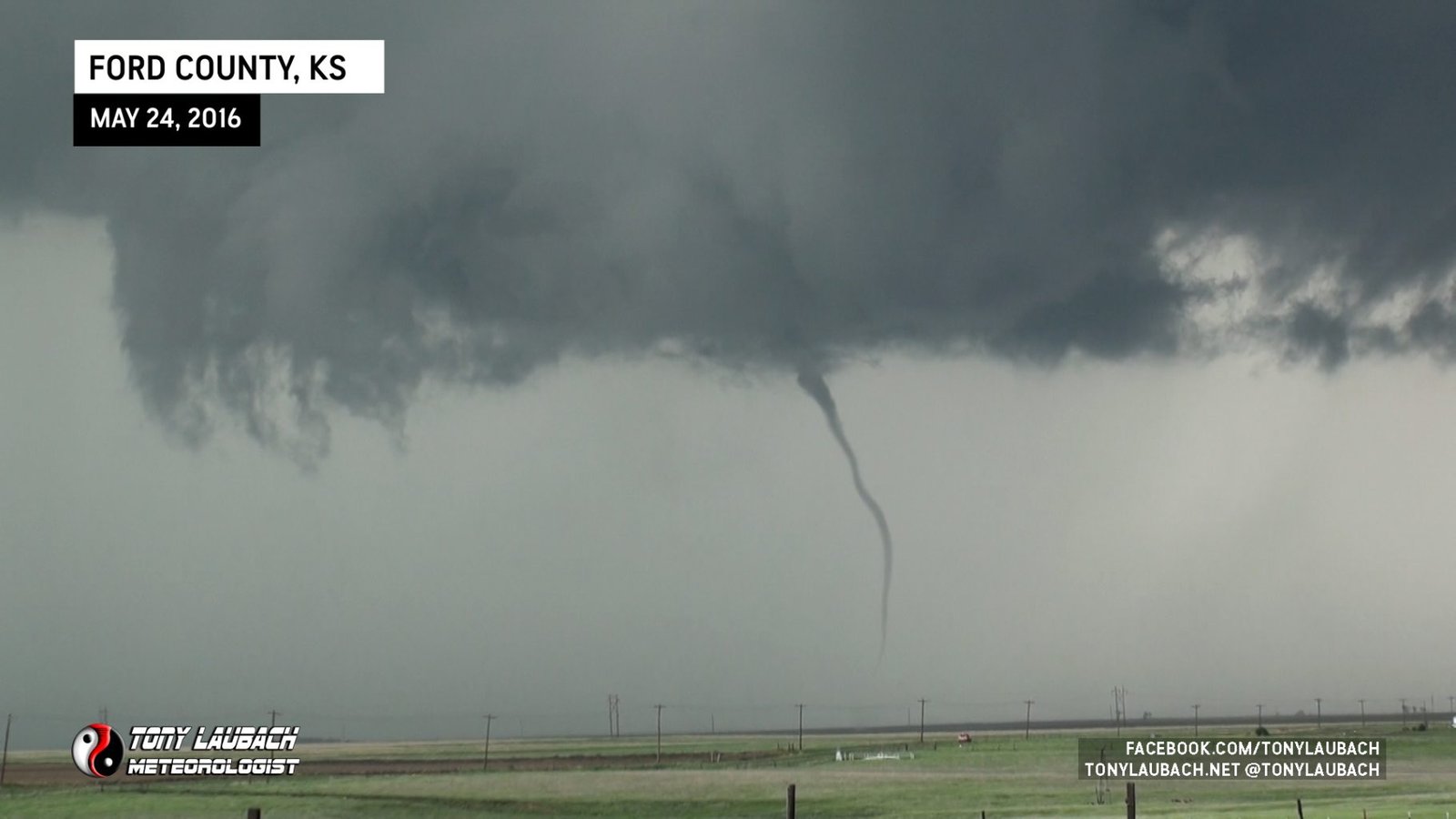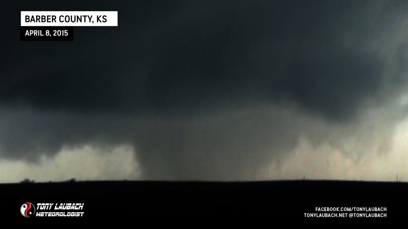 New tornado develops and is the longest of the sequence, morphing into various forms as it churns away. My first national-aired tornado video.
