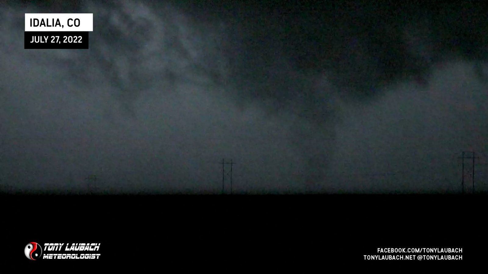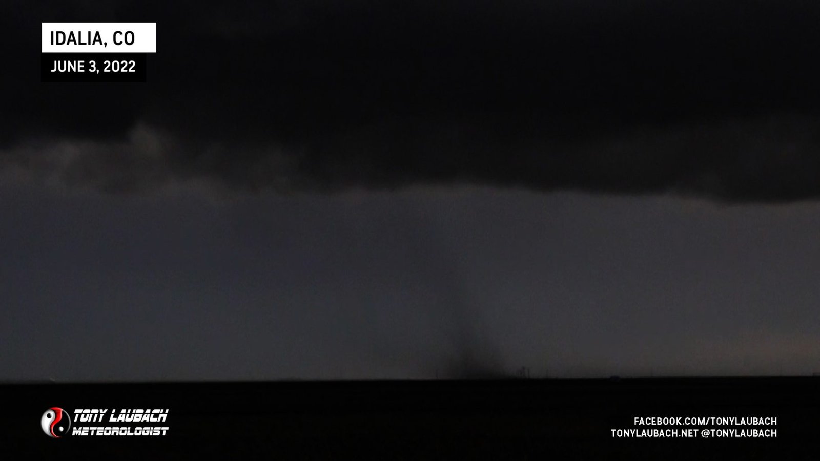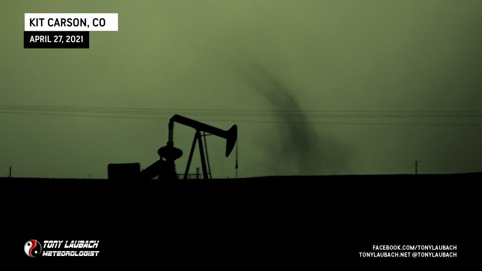 Brief touchdown after sunset viewed looking north from US-160 east of Kim, Colorado.