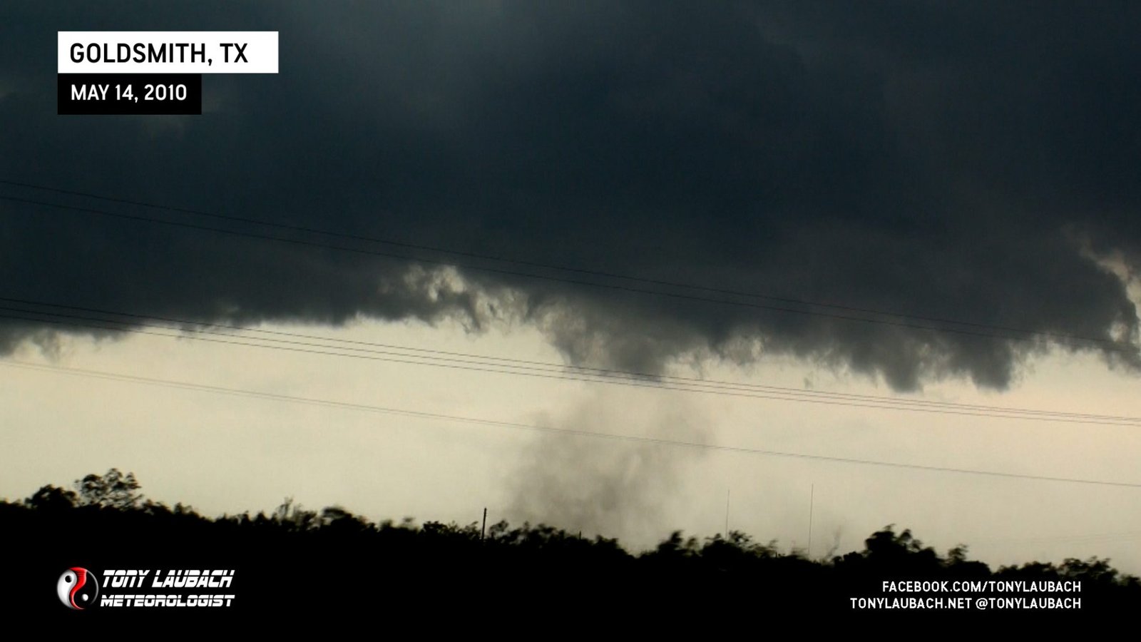 Initial Stages of Strong Tornado, Experienced at Abandoned DQ; Do not have imagery as developing tornado moved southeast out of sight.