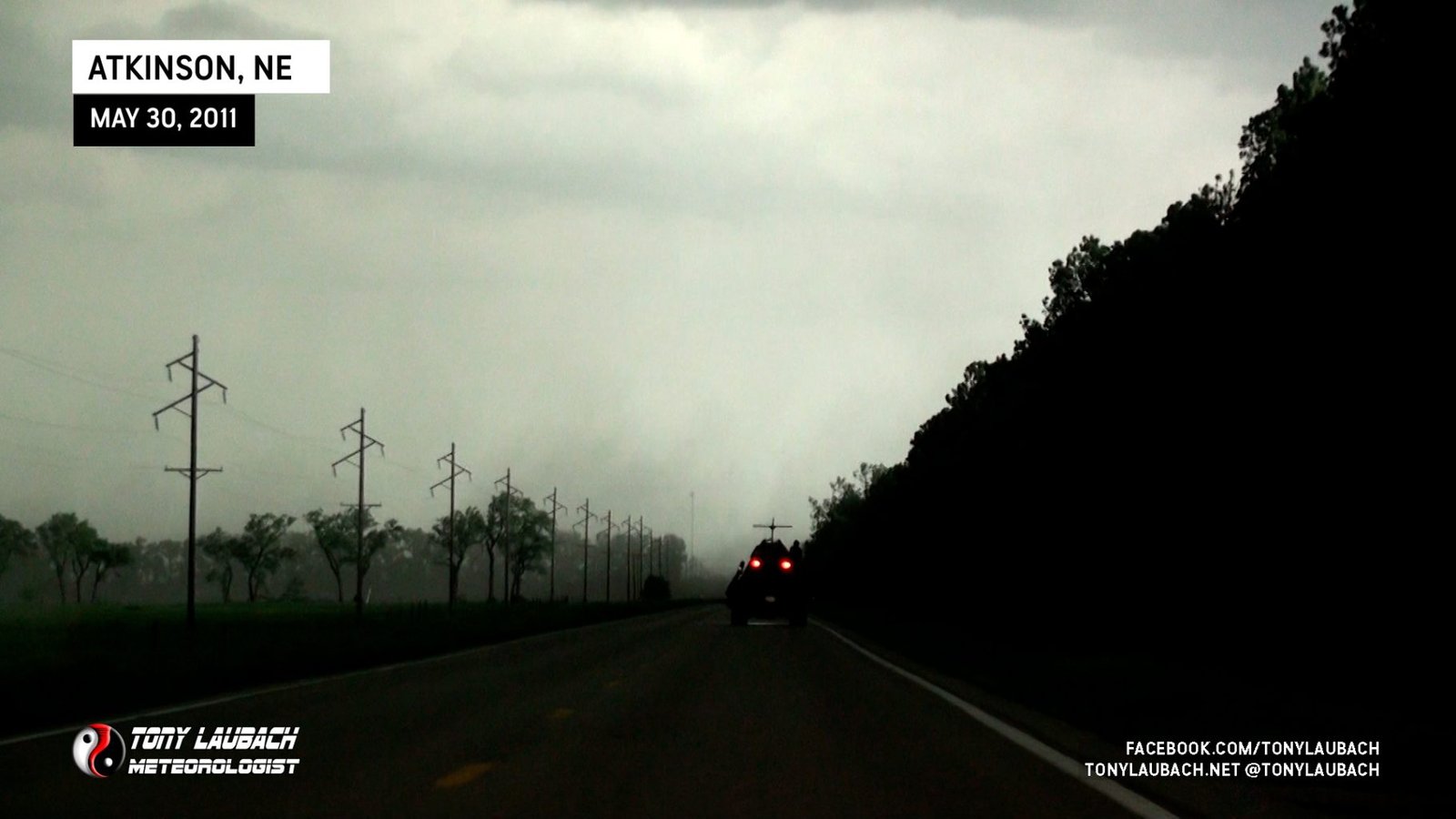 Caught glimpse as we were northbound on NE-47, but tornado lifted before we could stop. Image of remnant tornadic circulation.