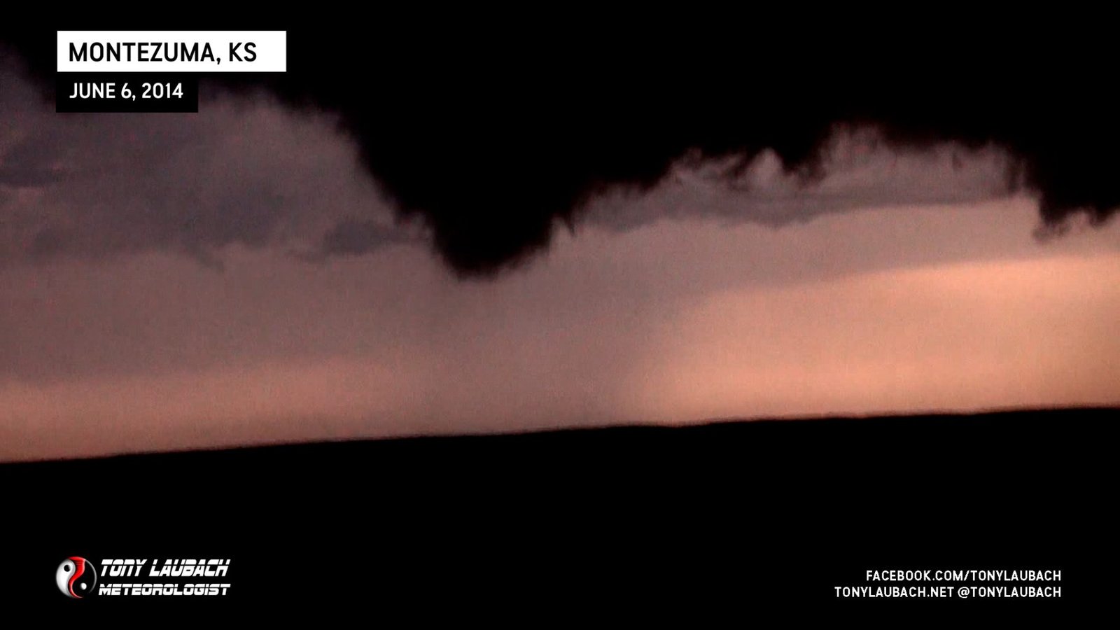 West of Attica, Kansas on Hwy 160; Brief dust swirl on the ground beneath rotating base prior to main Attica tornado. No images.