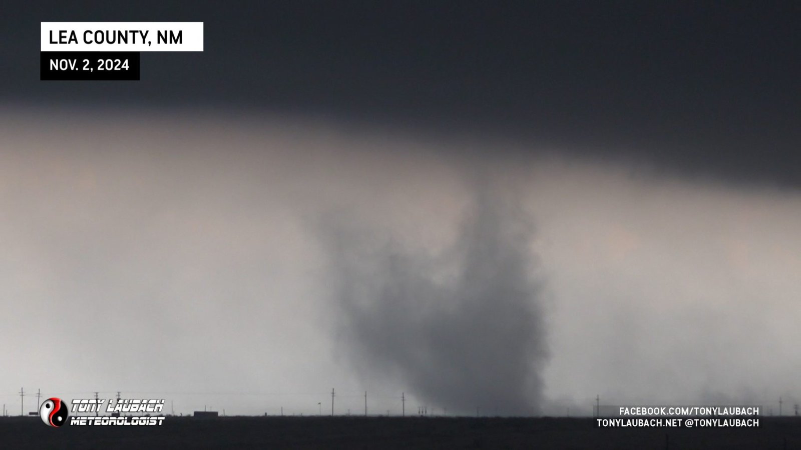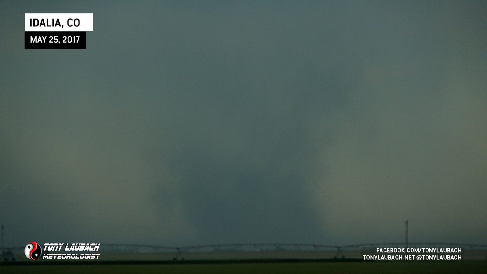 Caught rope-out of possible larger tornado blocked by terrain from our view north of Maxwell.