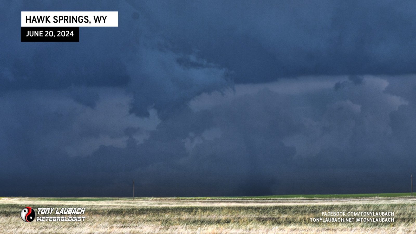 Looking west from near South Plains at a skinny, ropey funnel that briefly touched down (confirmed via others practically under this).