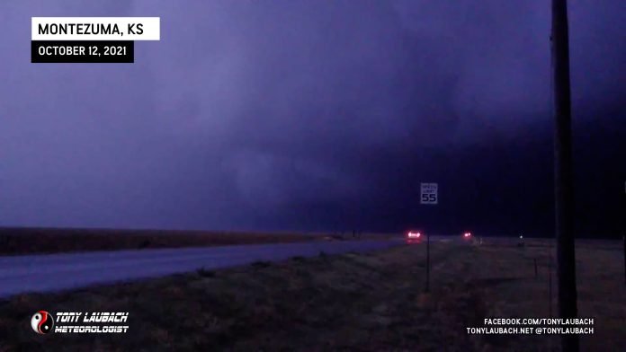 October 12, 2021 – Montezuma, Kansas By Tony Laubach - October 12, 2021 FacebookTwitterPinterestWhatsApp QLCS tornado south of Cimarron looking north along K-23. Video still from Ed Grubb in passenger seat.