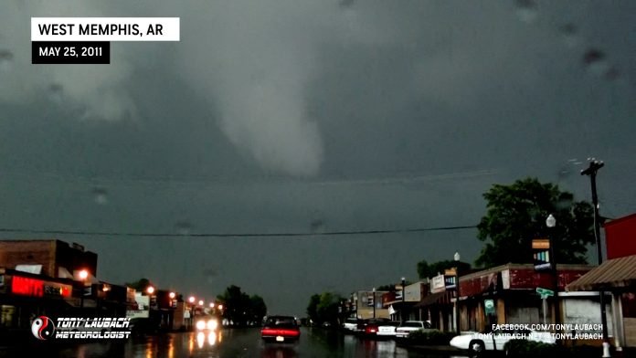 May 25, 2011 – West Memphis, Arkansas By Tony Laubach - May 25, 2011 FacebookTwitterPinterestWhatsApp Observed while eastbound on US-70 in downtown West Memphis looking east. Observed damage moments after this shot. Was 5th consecutive day with a tornado.