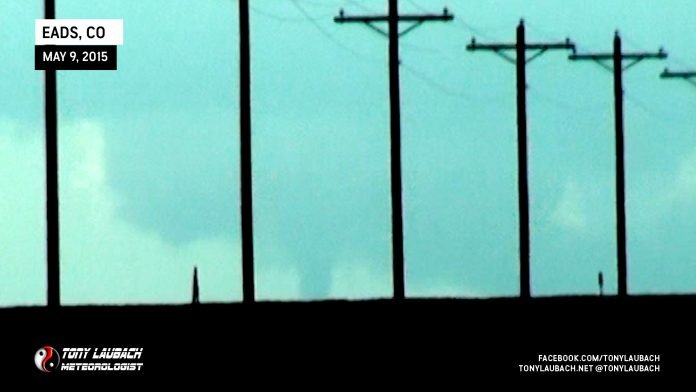 May 9, 2015 – Eads, Colorado By Tony Laubach - May 9, 2015 FacebookTwitterPinterestWhatsApp Viewed from across the border along KS-96 looking west at 47 miles away; the furthest (by far) I’ve ever seen a tornado!
