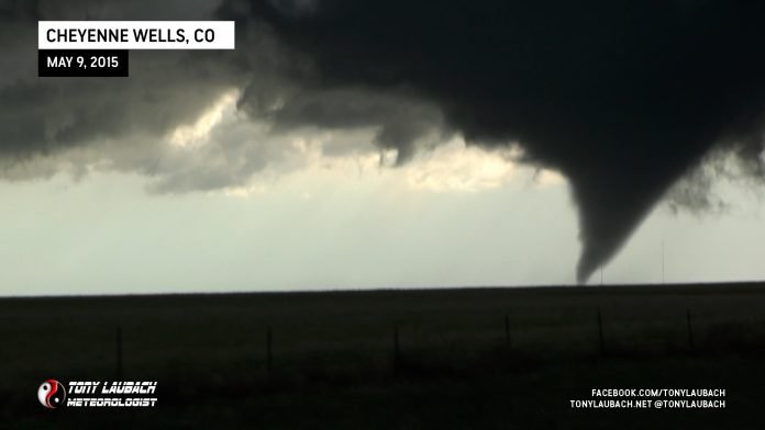 May 9, 2015 – Cheyenne Wells, Colorado By Tony Laubach - May 9, 2015 FacebookTwitterPinterestWhatsApp Caught just west of Cheyenne Wells as a tornado briefly touched down south of US-40.