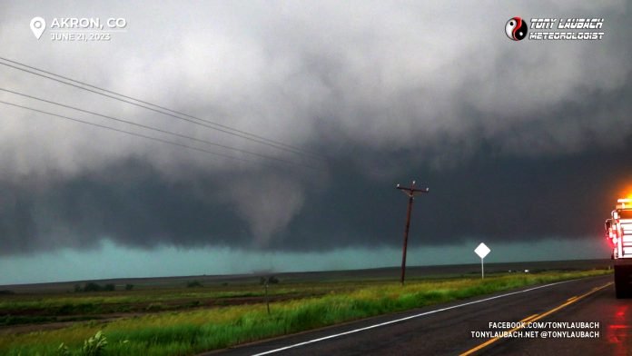 June 21, 2023 – South of Akron, Colorado By Tony Laubach - June 21, 2023 FacebookTwitterPinterestWhatsApp Tornado #7 - 4:34PM Another touchdown west of the highway on my north approach.