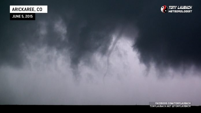 June 5, 2015 – Arickaree, Colorado By Tony Laubach - June 5, 2015 FacebookTwitterPinterestWhatsApp Rope satellite tornado caught as larger tornado was ongoing to the north.